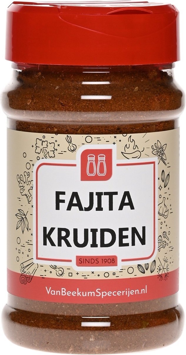 Fajita Kruiden zonder zout kopen bij Van Beekum Specerijen Bestel jouw Fajita Kruidenmix eenvoudig online bij Van Beekum Specerijen. Al onze kruidenmixen worden zorgvuldig gemengd in onze eigen mengerij en verpakt in hersluitbare strooibussen, zodat de versheid gegarandeerd blijft. Bovendien profiteer je bij ons van een 100% tevredenheidsgarantie: niet goed, geld terug. Bestel vandaag nog en geniet morgen al van de lekkerste fajita’s!